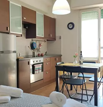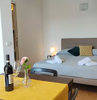 Ogni camera è dotata di: - Cucina completamente attrezzata con lavello, piano cottura a induzione, forno a microonde e tradizionale, frigorifero. - Letto da 120 cm. - Angolo studio con scrivania e sedia. - Scaffali, guardaroba e mobili da cucina....