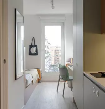 Questo monolocale a Novoli-Firenze Nova è completamente arredato e dotato di cucina attrezzata e aria condizionata (centralizzata). Offre agli studenti uno spazio abitativo confortevole. Tutte le utenze, il riscaldamento, il Wi-Fi e le pulizie per...