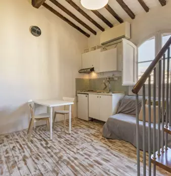 Questo elegante monolocale di 38 m² con 1 bagno è in affitto in Via Ghibellina a Santa Croce. La camera da letto soppalcata ha un letto matrimoniale e un cassettone mentre al piano inferiore il soggiorno e la cucina combinati sono ben attrezzati. ...