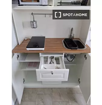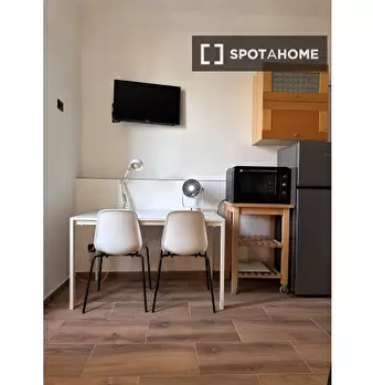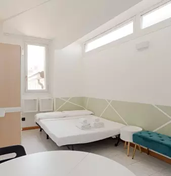 Benvenuti in questo monolocale completamente arredato a Lodi-Corvetto, Milano. Il monolocale è dotato di aria condizionata individuale per riscaldamento e raffreddamento, una cucina attrezzata con elettrodomestici essenziali come lavatrice e forno...