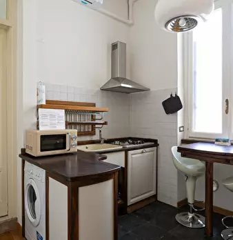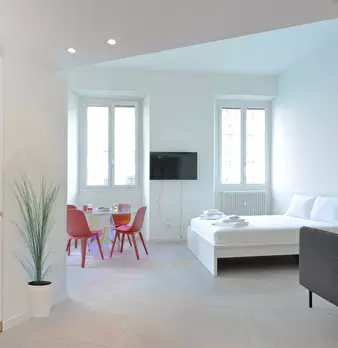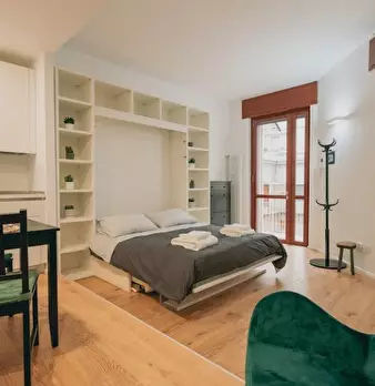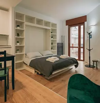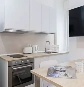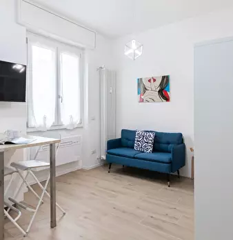 Questo accogliente monolocale arredato è disponibile per l'affitto a Giambellino, Milano. Il monolocale si affaccia sull'esterno e offre comfort come TV, aria condizionata centralizzata e cucina completamente attrezzata con lavastoviglie e forno. ...