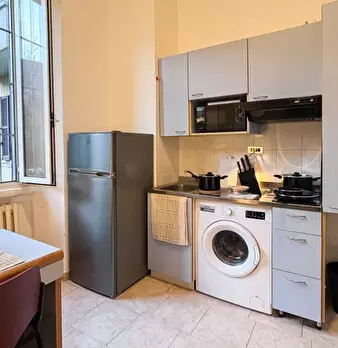 Questo monolocale completamente arredato a Lodi-Corvetto, Milano, offre riscaldamento centralizzato ed è dotato di elettrodomestici di base, come una lavatrice in un'area comune e una cucina completamente attrezzata. In questo alloggio non è conse...