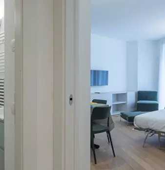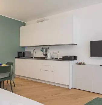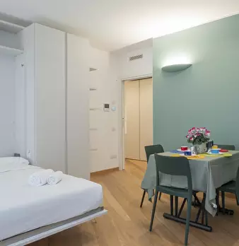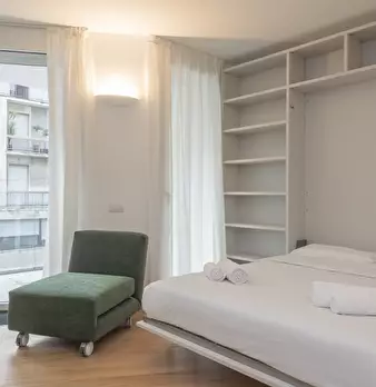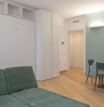 Elegante monolocale in zona Susa, a breve distanza dalla metropolitana. L'appartamento è stato ristrutturato con gusto. La cucina a vista con tavolo da pranzo è arricchita da un letto matrimoniale a scomparsa, ottimizzando gli spazi e garantendo v...