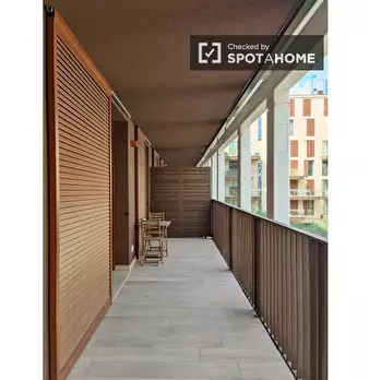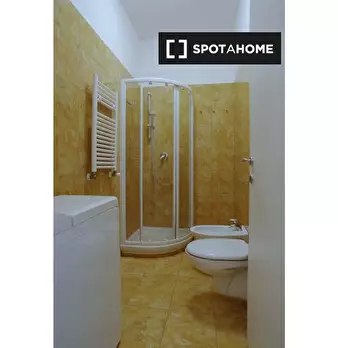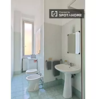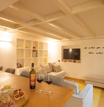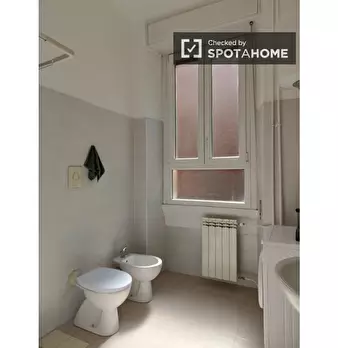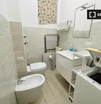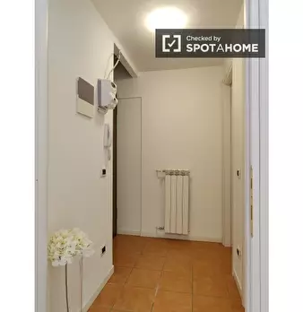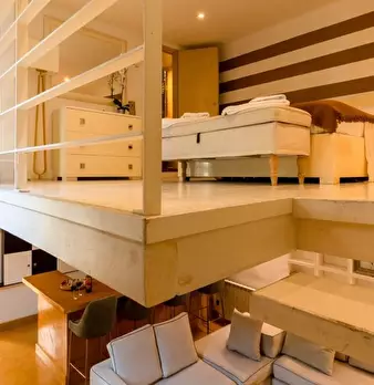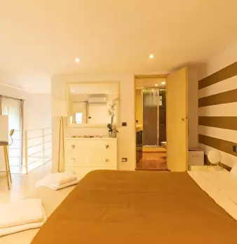 Questo spazioso loft vicino alla stazione della metropolitana Lodi è suddiviso su due piani. Il piano terra dispone di un ampio soggiorno con cucina, due divani e un televisore. Sullo stesso piano l'appartamento è dotato anche di uno spazio estern...