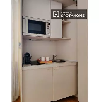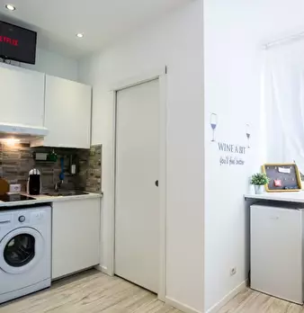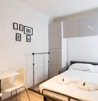 Godetevi il comfort di questo monolocale arredato situato a Guastalla, Milano. Questo appartamento è dotato di aria condizionata autonoma, riscaldamento centralizzato e biancheria da letto inclusa. La cucina dell'appartamento è completamente attre...