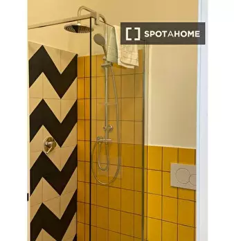 Questo monolocale completamente arredato al Pigneto offre aria condizionata centralizzata e servizio di pulizia periodica a pagamento. Verificato da Spotahome, questo accogliente spazio è adatto a professionisti e studenti, comprese le coppie. Tut...