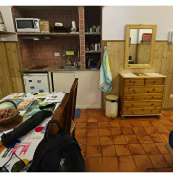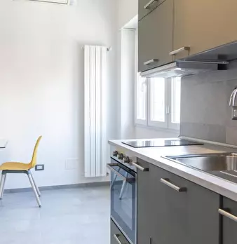 Questo monolocale con vista esterna, situato a Casal Bruciato, Roma, offre uno spazio abitativo accogliente e moderno. È completamente arredato e comprende una cucina attrezzata con elettrodomestici essenziali come lavastoviglie, forno e TV. L'imm...