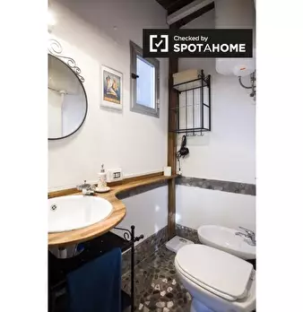 Questo grazioso monolocale nel Rione Ponte, a Roma, è ideale per chi cerca uno spazio accogliente e arredato. Il monolocale è dotato di una cucina attrezzata e di una confortevole zona giorno con TV. Si prega di notare che le bollette di elettrici...