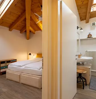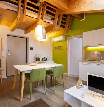 Questo monolocale nel Centro Storico di Trento offre uno spazio abitativo completamente arredato, con cucina attrezzata e aria condizionata individuale. Si prega di notare che non sono ammessi animali domestici e non è consentito fumare, e le copp...