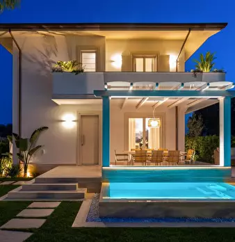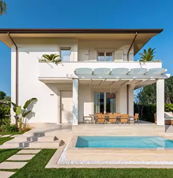 FORTE DEI MARMI - VITTORIA APUANA - Villa Lorenza è una villa bifamiliare posizionata in una zona residenziale e tranquilla, di circa 270 mq di nuova costruzione su di un lotto di 600 mq a 200 mt dal mare, arredata e rifinita con particolari di lu...