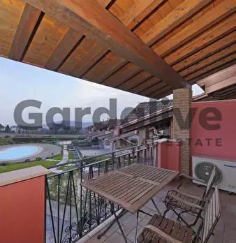 In elegante residence con piscina, proponiamo in affitto villetta a schiera disposta su più livelli, ideale per chi cerca comfort, privacy e una splendida vista lago. Al piano terra si trova la zona giorno con soggiorno e cucina a vista, oltre a ...