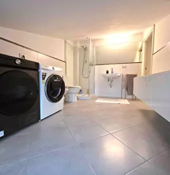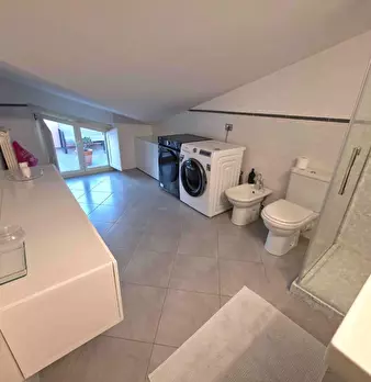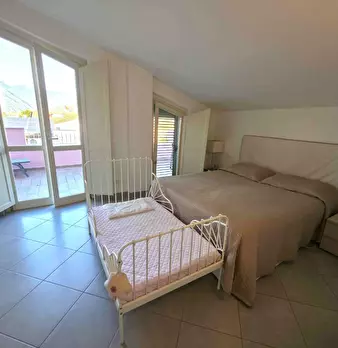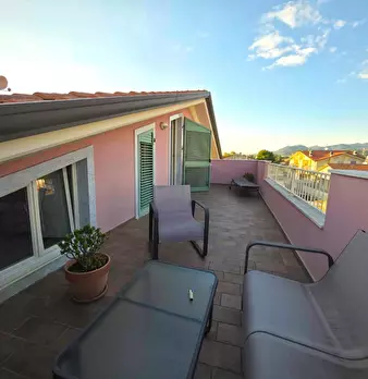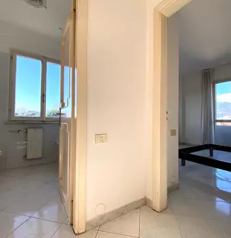 Appartamento al Piano Primo Senza Ascensore sul Confine tra Massa e Carrara. Ingresso su Disimpegno, Soggiorno con Angolo Cottura, Camino Funzionante e Accesso a Terrazzo Perimetrale con Lavatrice. Corridoio Zona Notte, Camera Matrimoniale, Camera...