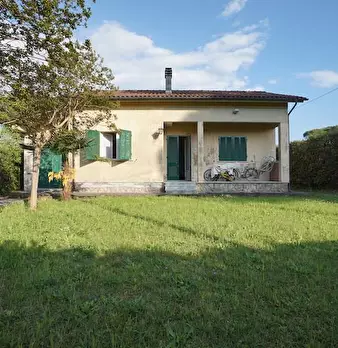 Ronchi, a circa 900 mt dal mare, in bel contesto verde e silenzioso, villetta singola su due livelli composta da: ingresso, soggiorno, pranzo, cucina, 2 camere, disimpegno, ripostiglio e 1 bagno a piano terra; ampio vano sottotetto con 1 bagno/lav...