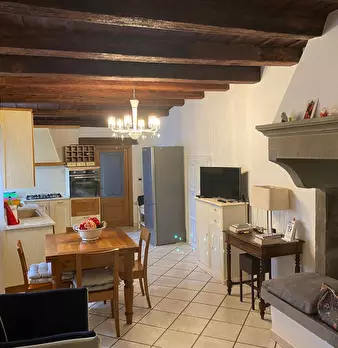 BIBBIENA, LOC. QUERCETO, VENDESI appartamento indipendente 60 mq, piano terra e resede esclusiva sul retro di circa 50 mq, in complesso colonico. L'appartamento, finemente ristrutturato nel 2000, si presenta così suddiviso: soggiorno con angolo co...