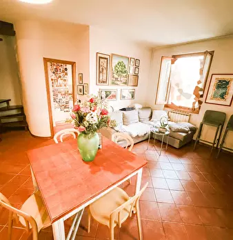 Levane pressi (amministrativamente Bucine), in campagna, appartamento con ingresso indipendente da piccola loggia coperta composto da salotto di ingresso con camino, cucina abitabile, camera, cameretta/studio e bagno. Al piano terreno, due fondi ...