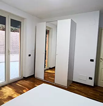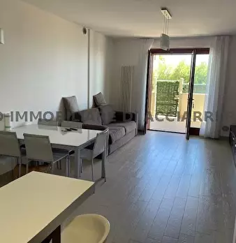 Appartamento al piano terra con ingresso indipendente, della superficie di circa 61,5 mq, composto da soggiorno con angolo cottura, due camere da letto (una matrimoniale e una doppia) e un bagno con box doccia. L’abitazione è impreziosita da un gi...
