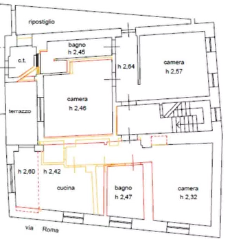 IMMOBILE LIBERO Porzione di casa situata a Lamon (BL), in Via Roma. L'unità si sviluppa al primo piano: sul fronte di Via Roma è composta da corridoio, cucina con zona pranzo e soggiorno, servizio igienico e una camera; sul fronte di Via San Piet...