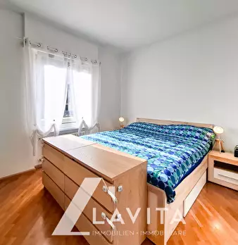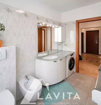 Ultimo piano con vista sulle montagne In via Pietralba proponiamo un trilocale spazioso situato al quarto e ultimo piano. L’appartamento è luminoso e offre una vista aperta sulle montagne altoatesine. All’interno si trovano un ampio soggiorno c...