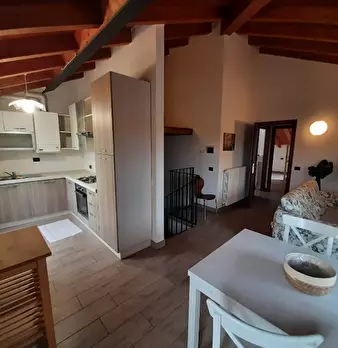 SAN FELICE DEL BENACO - APPARTAMENTO ATTICO - Secondo ed ultimo piano di casa di corte del centro storico di 80 mq. Grande loggia abitabile di 24 mq, ingresso, cucina abitabile, salotto con zona pranzo, disbrigo, bagno e due camere da letto. Dal d...