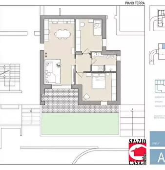 A soli 3 km da Azzano Mella e 3 minuti d'auto, proponiamo in contesto residenziale un ampio BILOCALE con dimensioni generose, portico vivibile, lavanderia e giardinetto , oltre a doppio garage.\nL'abitazione sarà servita da riscaldamento e raffres...