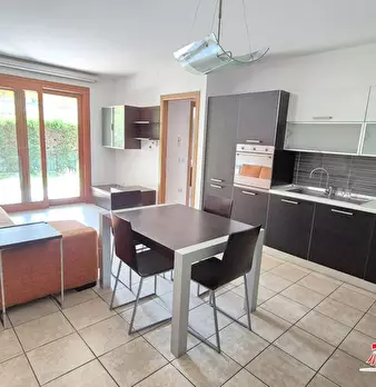 Proponiamo in vendita appartamento al piano terra di un fabbricato condominiale di recente costruzione (2006).\nL'immobile è composto da soggiorno con angolo cottura, due camere da letto, disimpegno e bagno.\nComprensivo di arredamento.\nAll'ester...