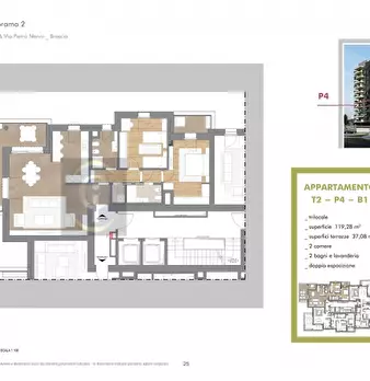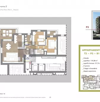 Nuovo trilocale in esclusivo complesso residenziale a Brescia, posizione comoda a tutti i servizi: bus, metro, parco, stazione, tribunale, supermercati, centro storico, uffici direzionali. Torri Panorama Tipologia B1 Esposizione Nord / Ovest disp...