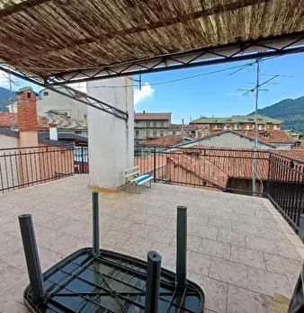 Garessio nella centralissima via vittorio Emanuele, appartamento su due piani composto da 1 sala, cucina, bagno e ampia terrazza, sopra 2 camere da letto, vista panoramica e soleggiata, termo autonomo, no spese condominiali. Classe energetica NC k...