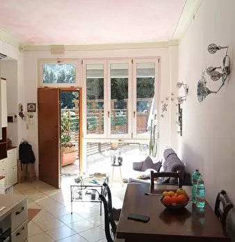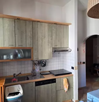 Bilocale di recente ristrutturazione ed arredato, piano terreno parzialmente seminterrato, composto da un vano pluriuso di mq 42 e suddiviso in cucina-pranzo-soggiorno, zona letto, anti-bagno e servizio igienico, completa la proprietà un resede es...