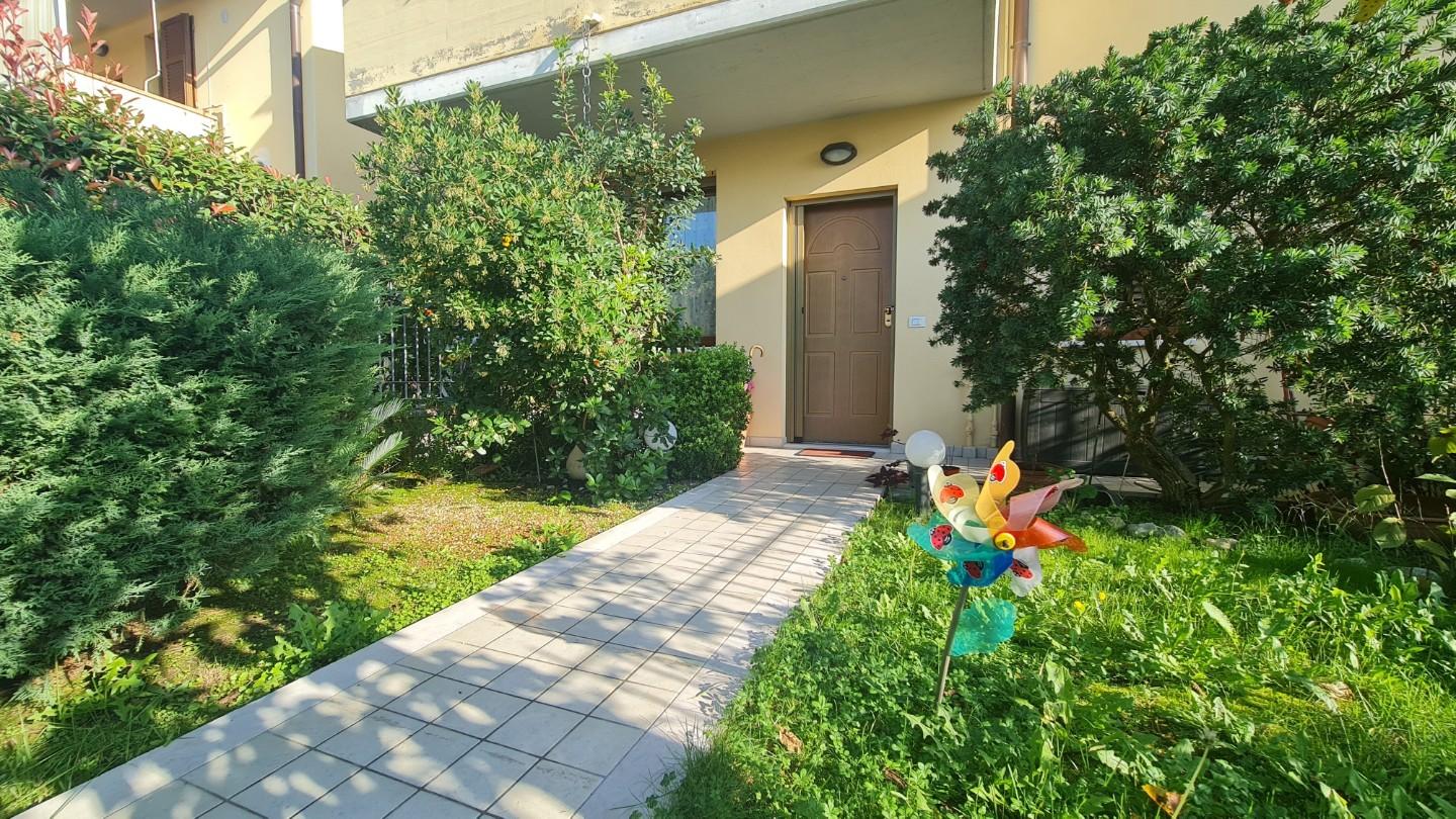 Rif. 885 - Appartamento piano terra ingresso indipendente, di nuova costruzione, composto da ingresso soggiorno con angolo cottura, camera matrimoniale, bagno e ripostiglio, corredato di ampio garage. Bella zona, e bello il contesto.