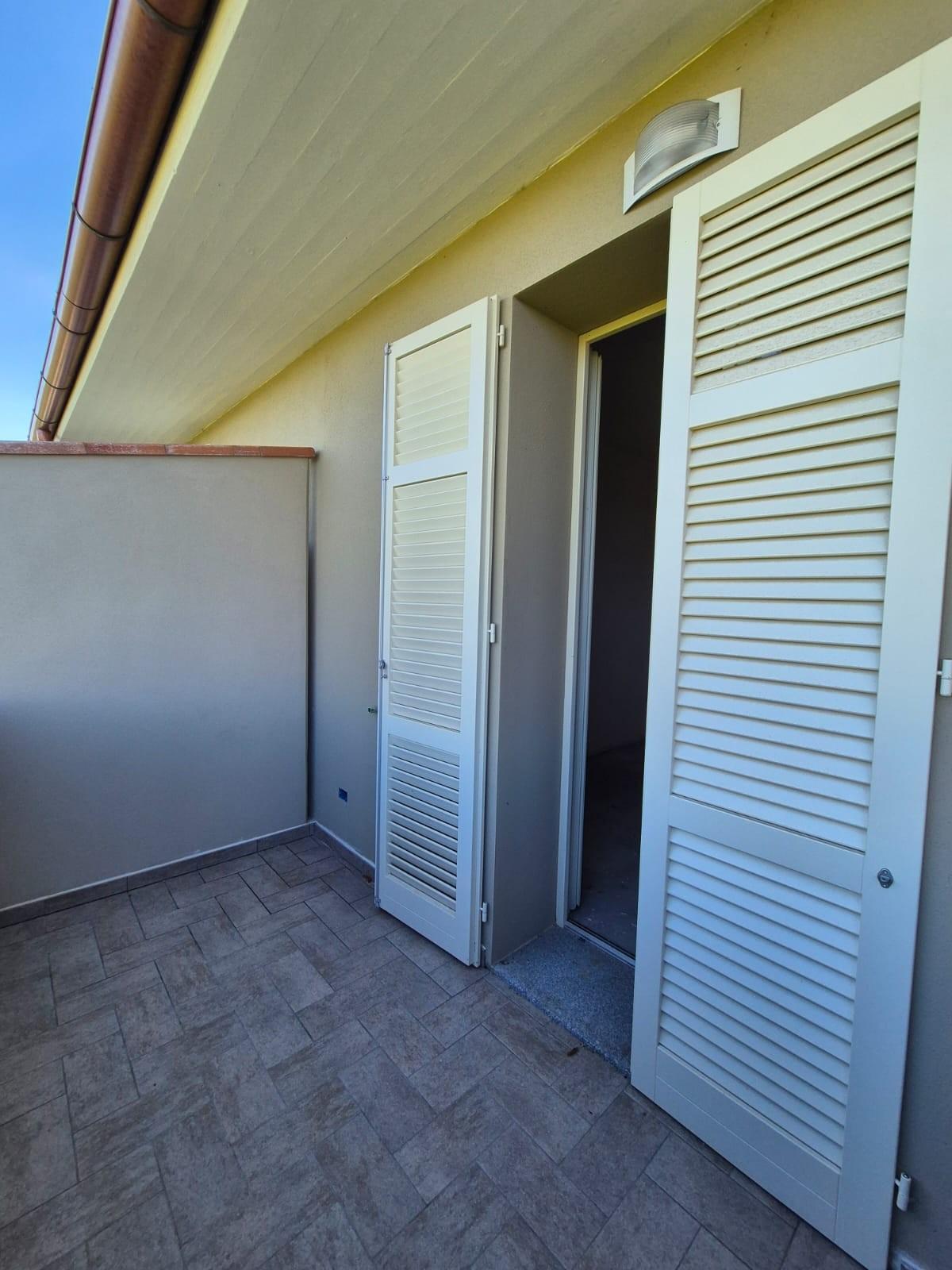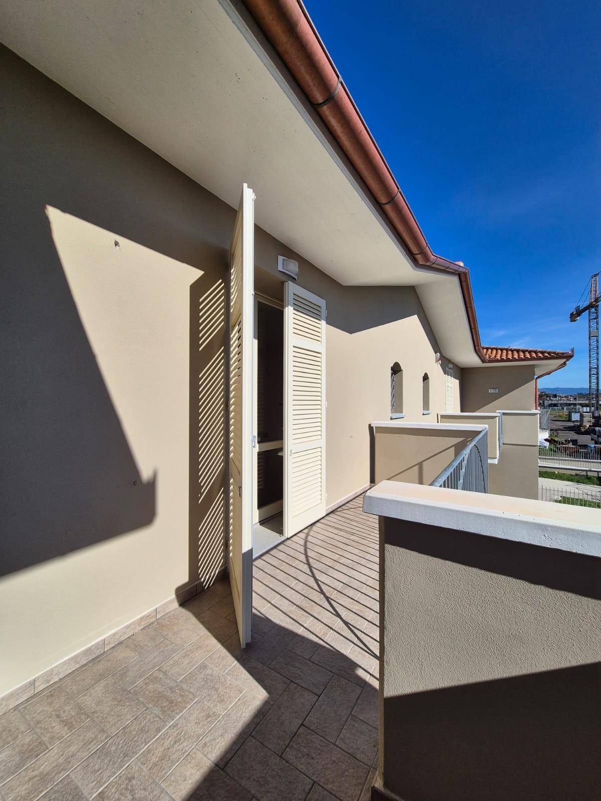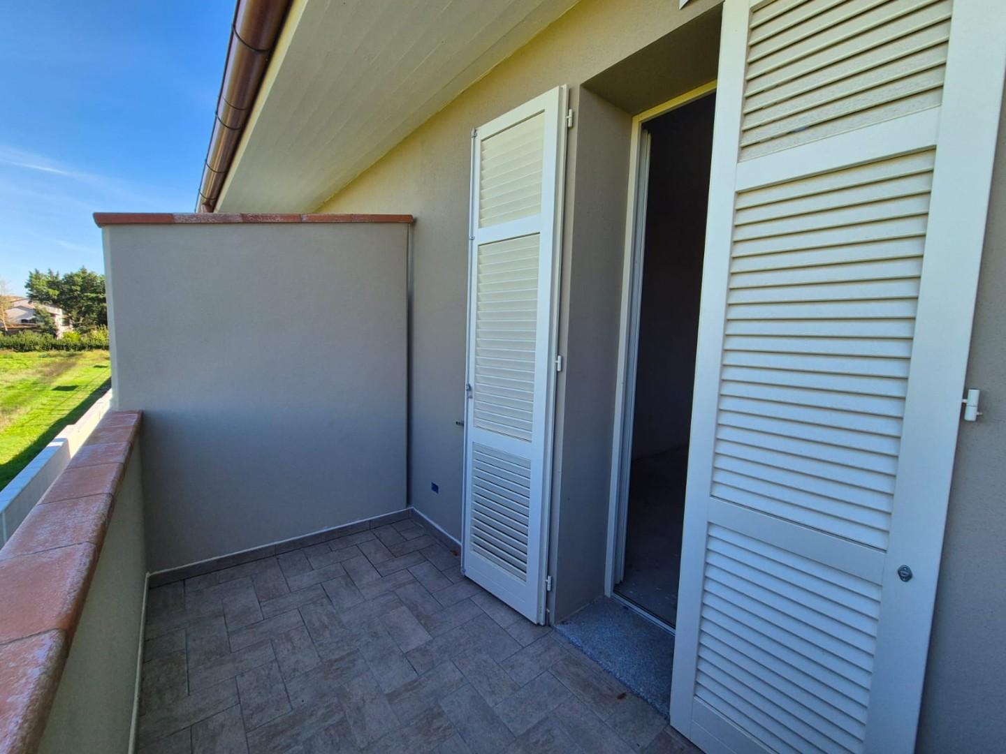 Fucecchio Appartamento di nuova costruzione al primo piano di 75mq. Si accede all'appartamento tramite resede privata, con ingresso al piano terra e scale interne. Al primo piano troviamo soggiorno-pranzo con angolo cottura e balcone, camera matri...