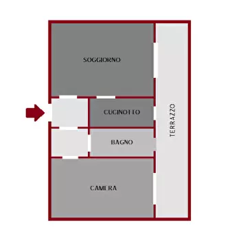 A Bertinoro, vendesi bilocale con ingresso indipendente, in contesto di sole due unità. L'appartamento è composto da soggiorno-cucina openspace al piano terra, camera da letto collegata ad un terrazzo e bagno al piano superiore. Esternamente è pre...