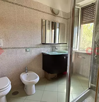 In una delle zone più tranquille e panoramiche di Acuto, immagina di entrare in un ambiente che ti accoglie con eleganza e armonia: un ampio salone, arricchito da una splendida scala in legno al centro, vero elemento di fascino che collega il pian...