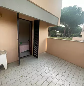 Questo appartamento fa parte di una più ampia struttura turistico ricettiva, dotata di piscina condominiale, in posizione strategica a Principina A Mare. Si distingue per l'ingresso indipendente e la comodità del piano terra, al suo interno è com...