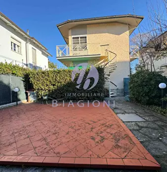 Ampio e luminoso appartamento a circa 900 m. dal centro di Marina di Pietrasanta e dal mare vendita , si considera anche permuta ., da valutare . Giardino su 3 lati con posti auto. ingresso al piano terra rialzato che porta al primo piano dove t...