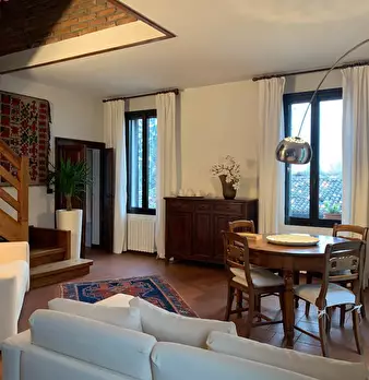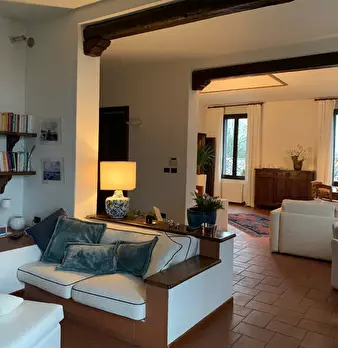 Appartamento su due livelli posto in villa divisa in due unità abitative con giardino privato. Al primo piano l'ingresso conduce ad un ampio salone con camino diviso in salotto e sala da pranzo, la cucina è moderna e funzionale, il corridoio porta...