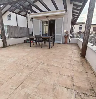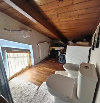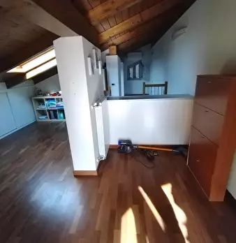 Nazzano proponiamo bilocale al piano primo di piccolo edificio di tre piani. Si accede al portone d'ingresso da scala esterna : cucina abitabile con caminetto, camera matrimoniale, ampio bagno con vasca idromassaggio e sanitari sospesi, piccolo r...