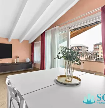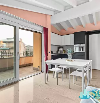 Trilocale - Ultimo piano- Ampio terrazzo con travi a vista Sogim propone in vendita esclusiva un caratteristico trilocale con ampio terrazzo di 12 mq circa. L'appartamento si distingue per la sua ampia zona living con cucina moderna a vista e tr...