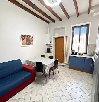 In tipico stabile di corte con cortile condominiale proponiamo, al primo piano, 2 locali arredato composto da: ingresso su soggiorno con cucina a vista, camera matrimoniale, spazioso ripostiglio, bagno, ripostiglio aereo e cantina. L’immobile è id...