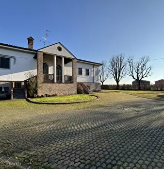 A704. Bomporto frazione. Nella verde e tranquilla campagna tra Sorbara e San Prospero, vendesi bellissima villa abbinata signorile, recintata sui quattro lati, con annesso parco curato, piantumato con alberi secolari. La villa è disposta su due l...