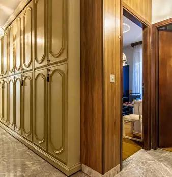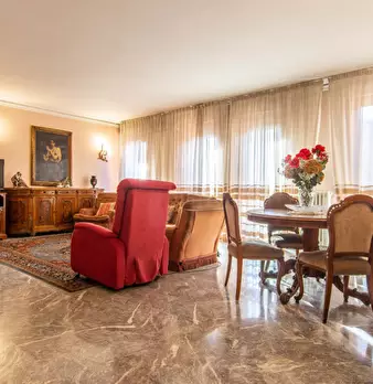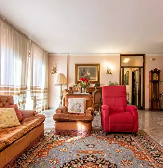Primo piano con ascensore, dall’ingresso si accede a un soggiorno di grandi dimensioni e cucina; vi e poi salotto di passaggio che porta ad un terrazzo collegato alla cucina e ad un corridoio che permette di accedere a: due camere accostate che co...
