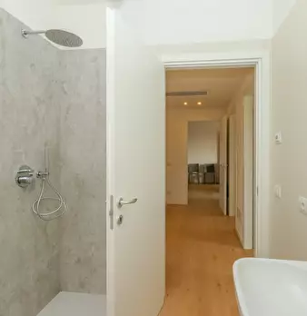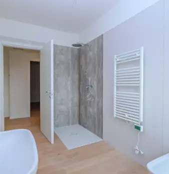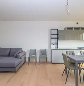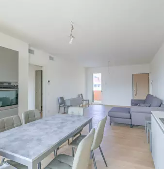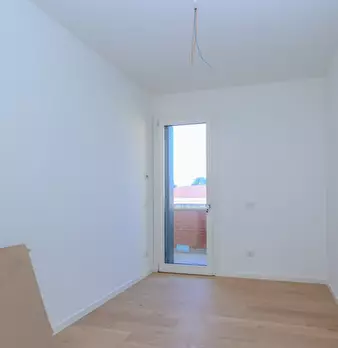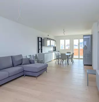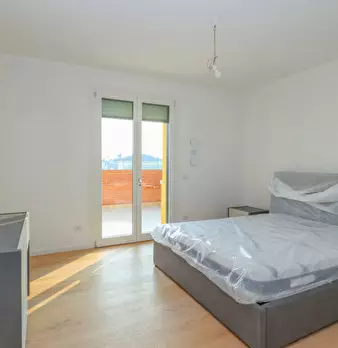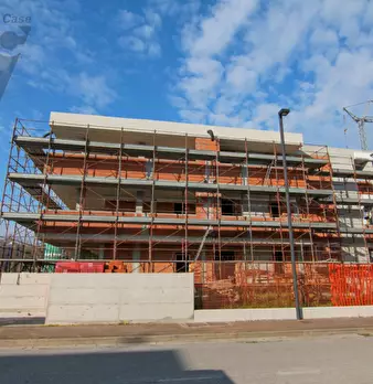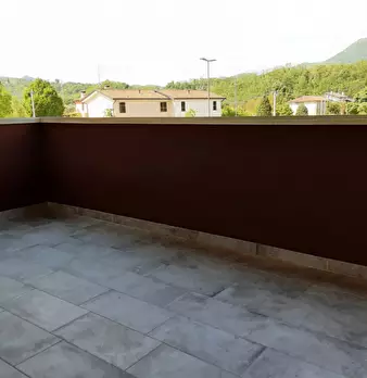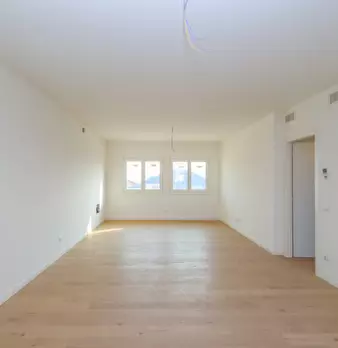 Nuovo appartamento al piano primo in contesto di 4 unità e composto di: soggiorno con angolo cottura di 48 mq., tre camere, due bagni, terrazza di 34 mq., due poggioli, garage e posto auto. L'immobile dispone d'impianto di riscaldamento a paviment...
