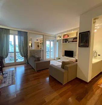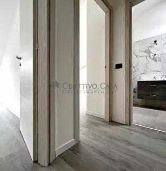 Rif. AT178 - A pochi passi dalla suggestiva Villa Bassi, proponiamo un rinnovato appartamento duplex all'ultimo piano, in palazzina servita da ascensore. • Zona Giorno: Un ingresso accogliente apre su un living moderno con cucina a vista. Complet...