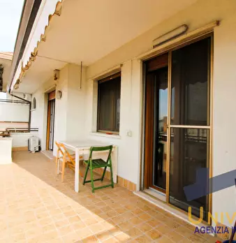 Situato in centro paese, nuovo attico al piano secondo in contesto di 6 unità e composto di: soggiorno di 48 mq., cucina, tre camere, due bagni, ripostiglio, centrale termica, disimpegno, due poggioli, terrazzo di 50 mq. e garage. L'immobile dispo...