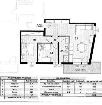 In quartiere tranquillo e ben collegato proponiamo in vendita appartamento trilocale di circa 75 mq. pronta consegna. L'immobile è composto da un ampio ingresso che apre su un soggiorno con angolo cottura con accesso diretto a un balcone privato ...