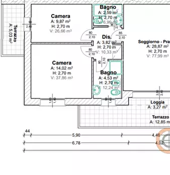 VIGODARZERE RIF. V04: 32 mq di zona giorno + 28 mq di terrazzo per godersi momenti di relax da maggio a settembre all'aria aperta! Bagno finestrato a servizio della zona giorno, spazio lavanderia ripostiglio ben studiato nel disimpegno, ormai ne...