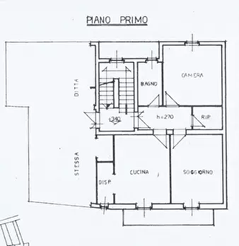 Importante porzione di fabbricato, da ristrutturare, disposta su tre livelli e di complessivi 160 mq circa. L’appartamento, che si sviluppa ai piani primo e secondo e a cui si accede tramite scala esterna, è formato da un ampio tinello, la cucina...
