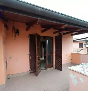 Appartamento al primo piano ed secondo sottotetto, con garage, composto da: soggiorno con cucina e balcone, disimpegno, due camere con balcone e bagno. Nel seminterrato vi è un ripostiglio e il garage. L'immobile viene venduto dal tribunale tra...