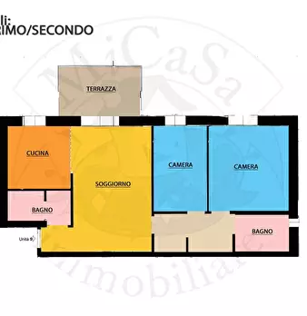 In palazzo del 1800 suddiviso in 3 unità abitative, troviamo al piano secondo una appartamento, circa Mq. 165 composto da ingresso, grande cucina con camino, ampio terrazzo, soggiorno, due camere matrimoniali, una camera singola, due bagni ed un l...