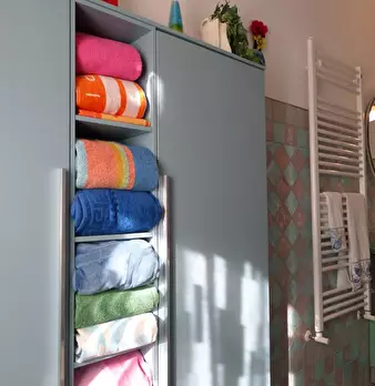 GUARDISTALLO (PI) Nel caratteristico borgo, a 10 km dal mare, al piano 1° di piccolo fabbricato con accesso da scala interna a 3, appartamento cosi' composto: cucina-tinello, camera matr. , bagno con finestra e zona soppalcata per cameretta. termo...