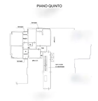 Pistoia centro : Appartamento libero su 3 lati, di 7 vani, posto al 4 piano con ascensore, composto da : Grande ingresso, cucinotto, sala di 60mq circa con uscita su balcone di oltre 20mq, disimpegno, 3 camere matrimoniali, 1 camera media, 1 studi...
